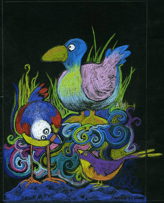 Blackbirds. Pencil on black card paper. Original 7"x 9"
